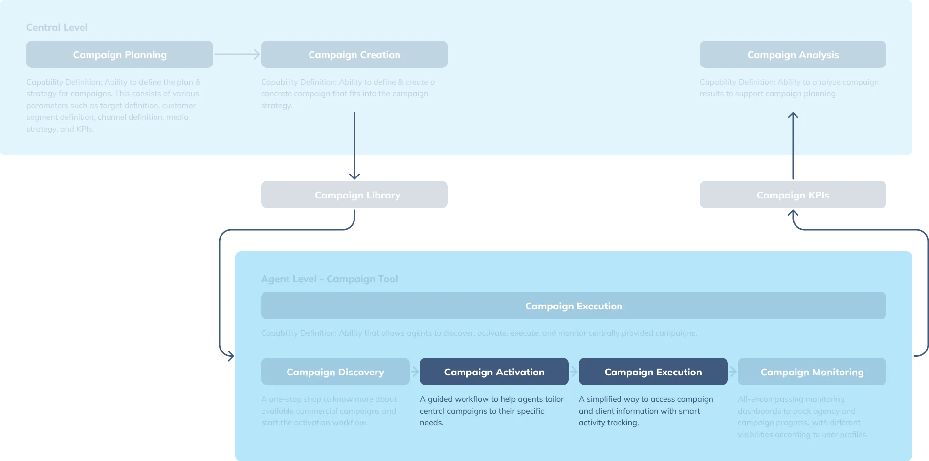 The Campaign Management Tool is designed for the end-to-end management of campaigns throughout their entire lifecycle. It enables users to plan, execute, track, and optimize campaigns, ensuring seamless coordination across different stages.