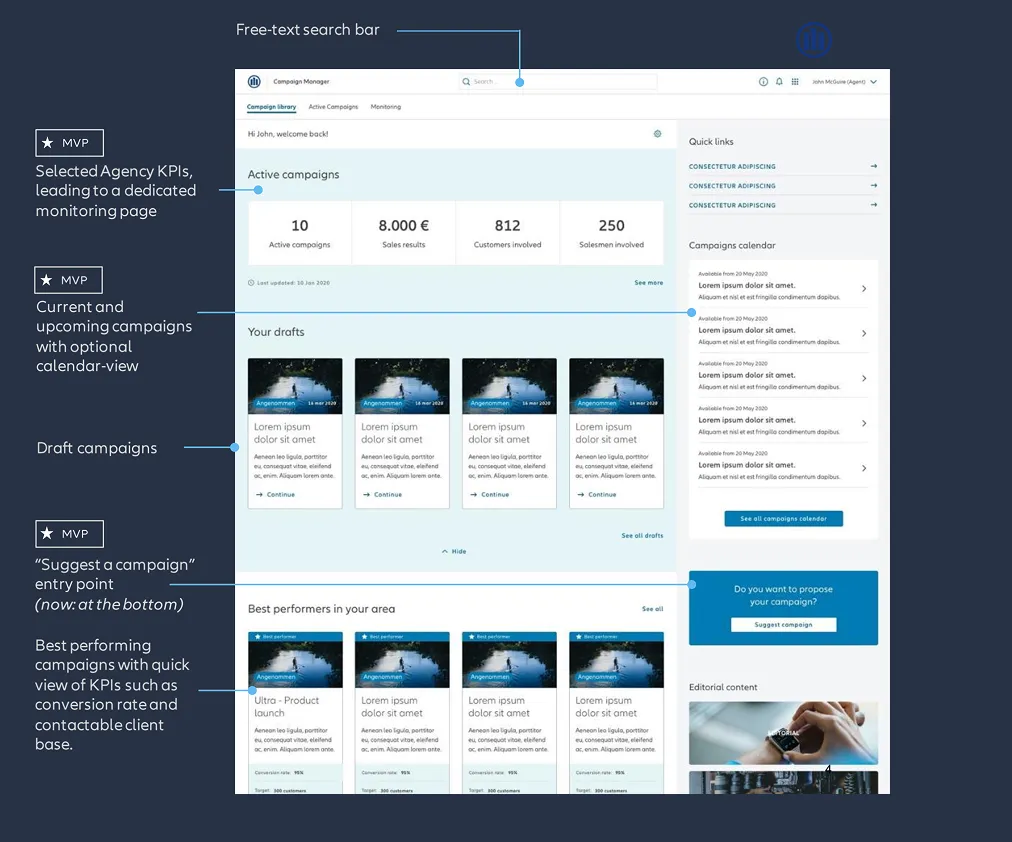 Through interactive exercises, we identified commonalities and unique market needs, prioritizing features that would enhance usability and efficiency for agents. The outcomes of this session laid the foundation for a scalable, adaptable campaign management tool, ensuring smooth integration with existing Allianz systems while meeting the diverse needs of European markets.