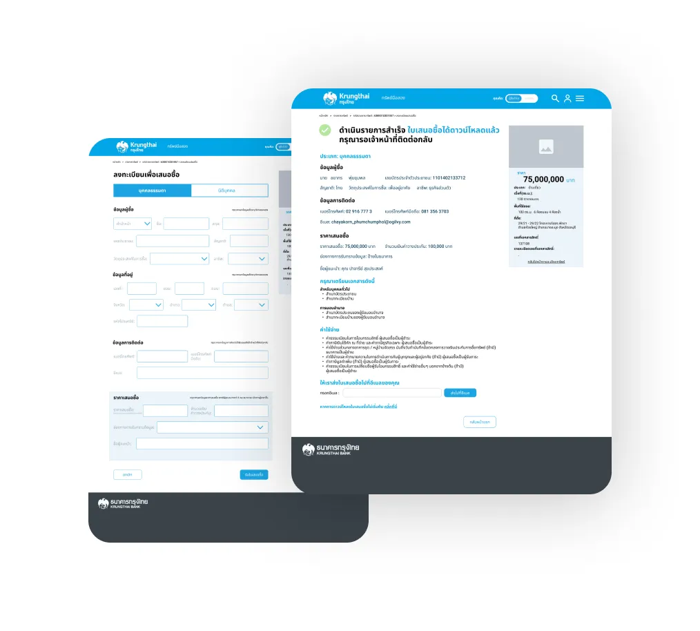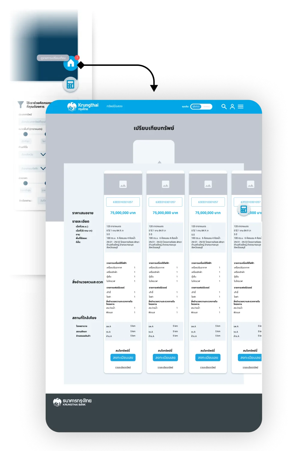 Utilizing its affiliation with a bank, KTB NPA offers additional benefits to users, including a loan calculator feature and personalized suggestions for favorable deals on house loans provided by KTB. This integration enables users to conveniently explore financing options and receive tailored recommendations, enhancing their experience and facilitating their decision-making process when considering property purchases.