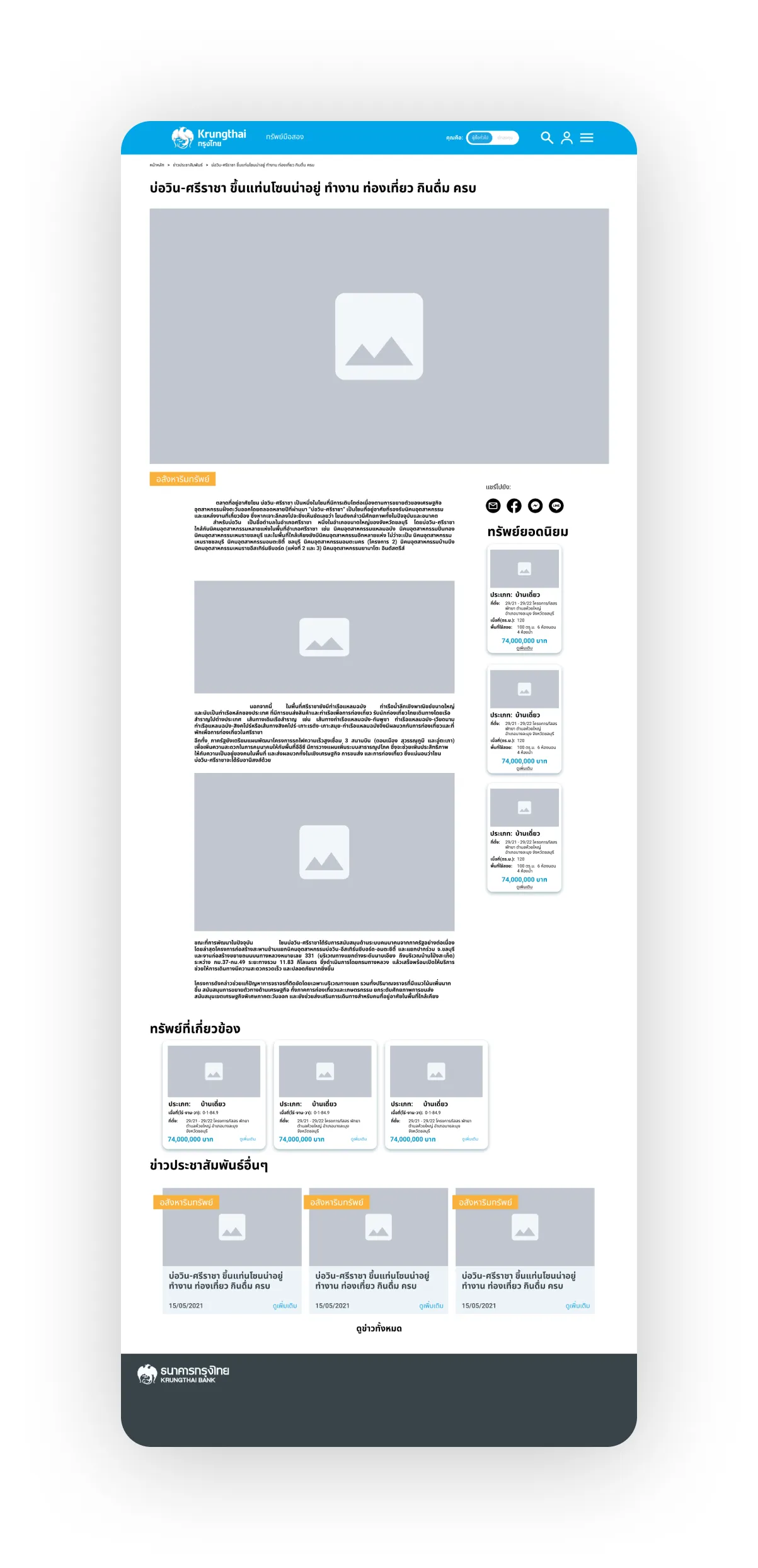 KTB NPA also positions itself as an information hub for real estate trends and other KTB-related news. Users can browse through this page to access articles covering various topics. In the article page, KTB NPA provides in-depth insights into real estate investments and related trends. Additionally, users interested in these trends can explore related properties currently available on the NPA listing directly from the article page. This integration offers users a seamless experience, allowing them to stay informed and explore potential investment opportunities within the same platform.